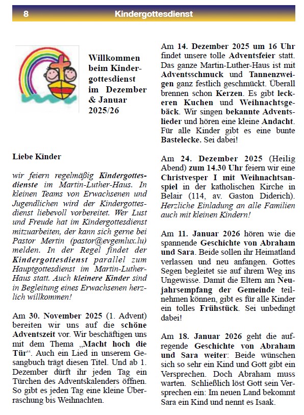 14.30 Christvesper I mit Weihnachtsanspiel in der kath. Kirche Belair (114, av. Gaston Diderich, L-1420 Luxembourg)